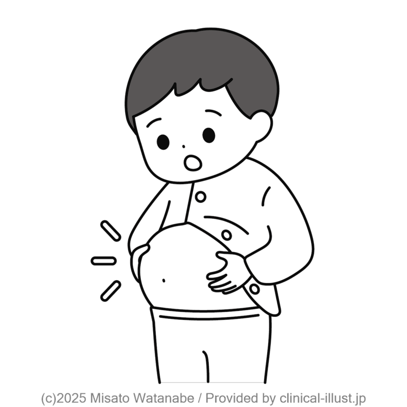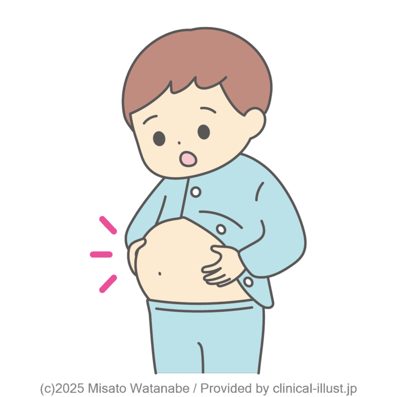 薬の副作用でお腹がふくらんだ子どものイラストです。