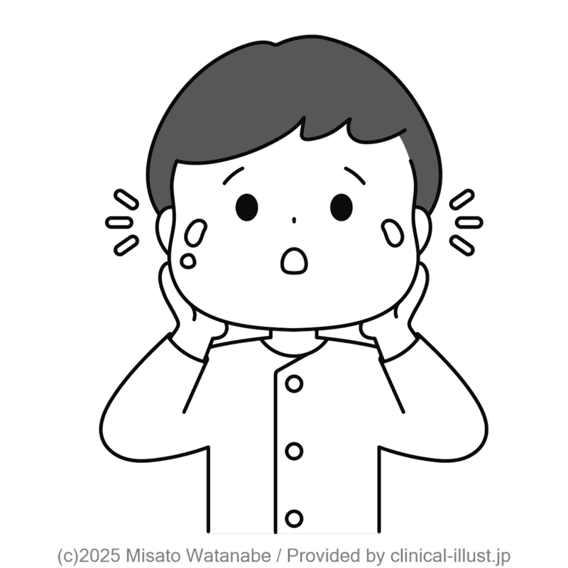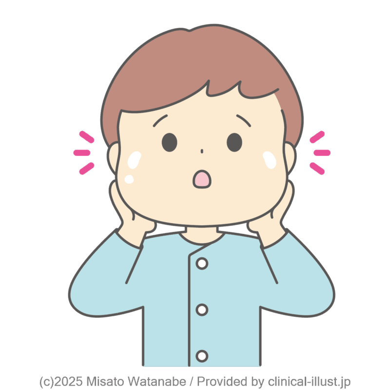 薬の副作用で顔が丸くなった子どものイラストです。