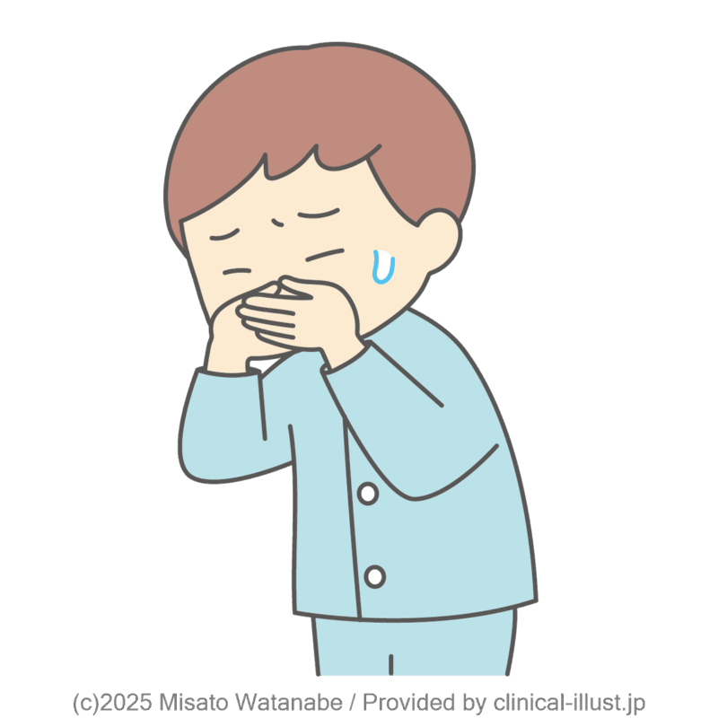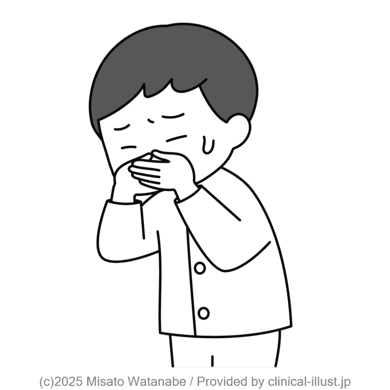 薬の副作用で吐き気を感じる子どものイラストです。