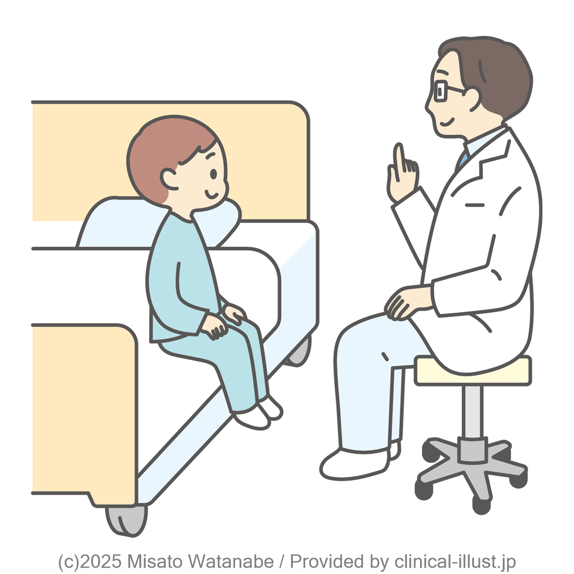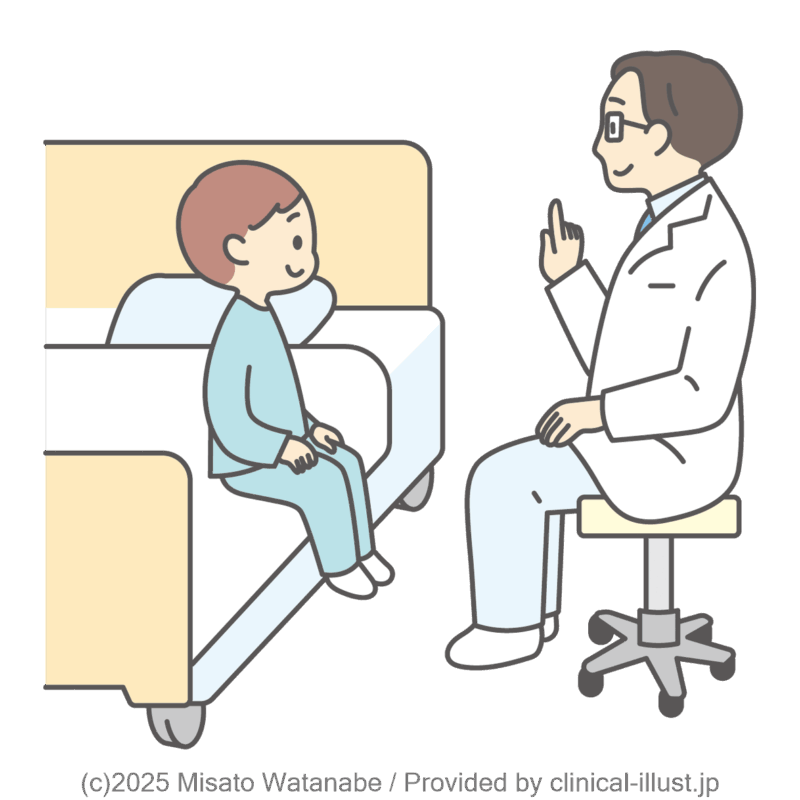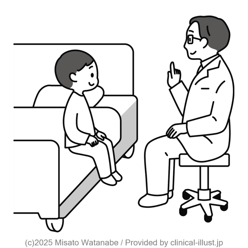 子どもと医師が病気や治療についてお話するイラストです。