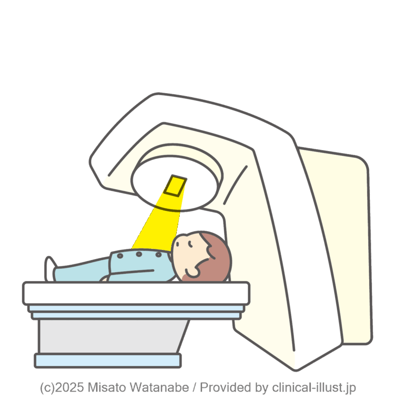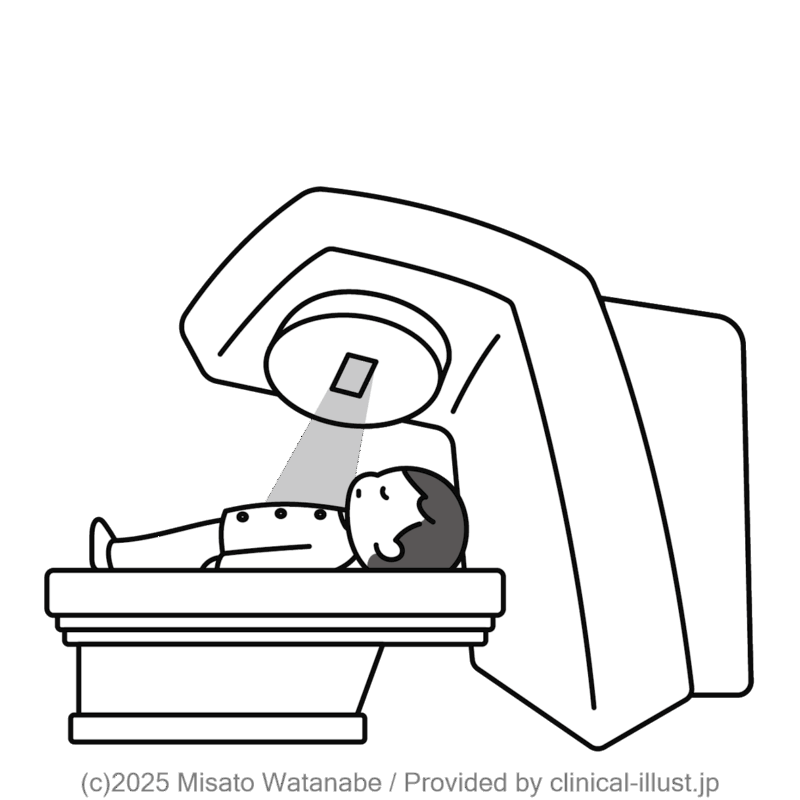 横になって治療を受ける子どものイラストです。