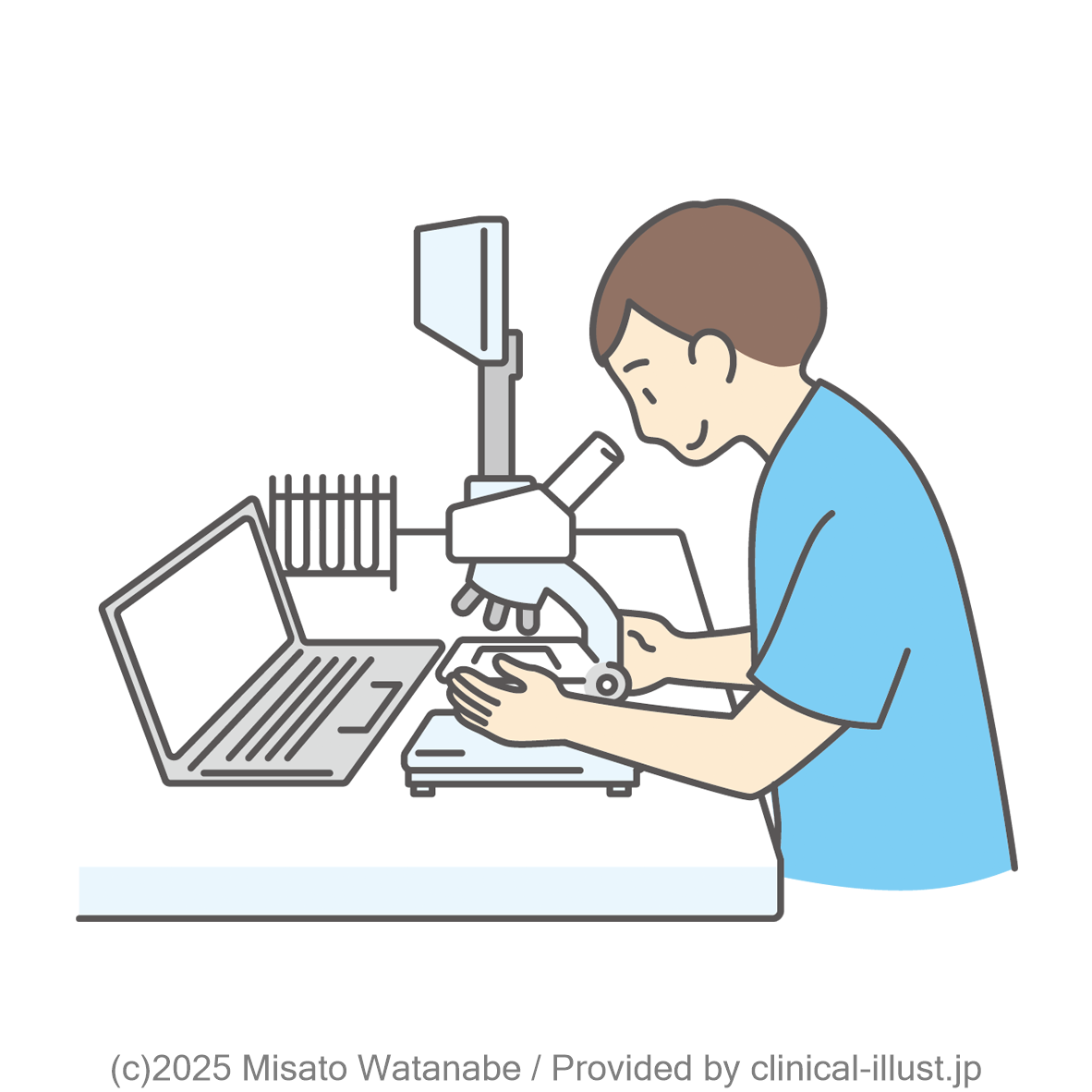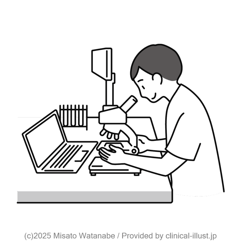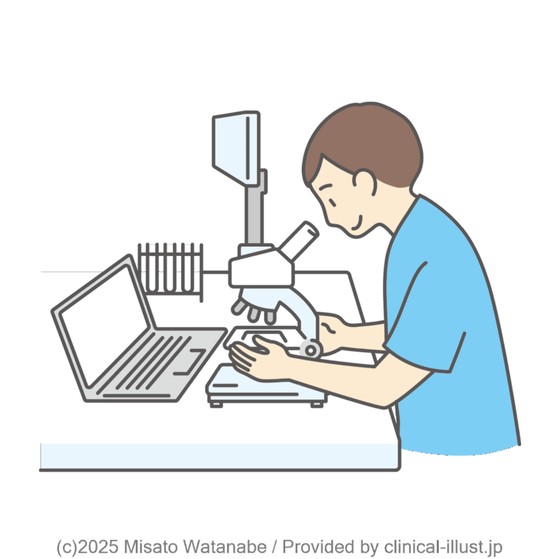 細胞を検査して、病気を調べるイラストです。