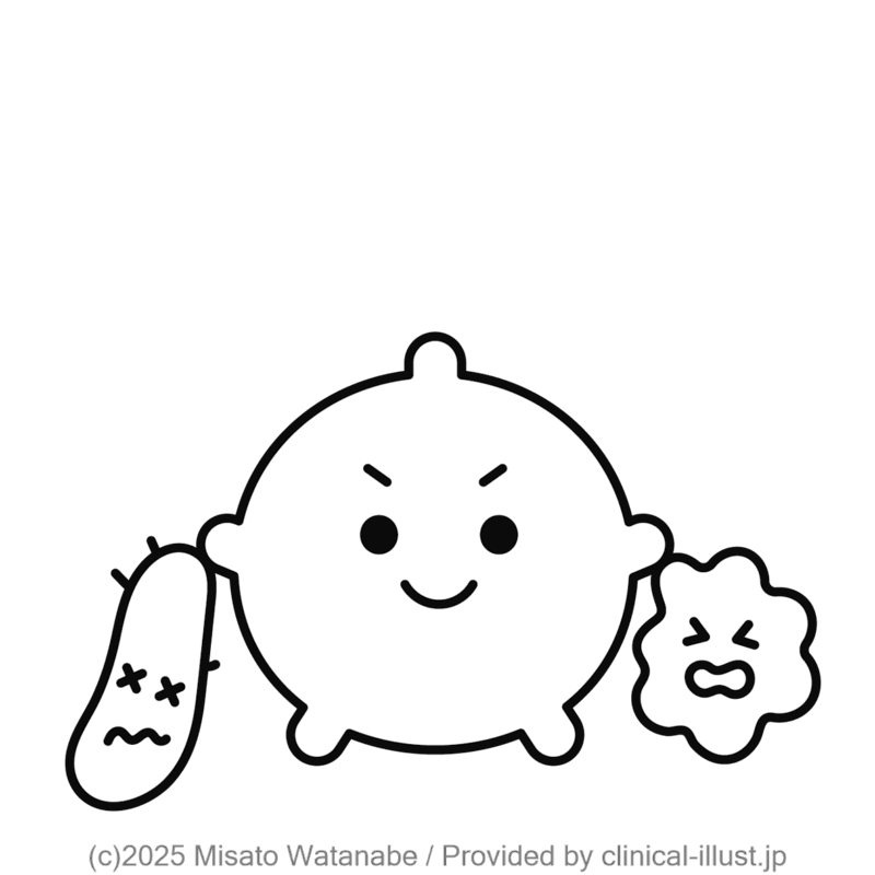 熱をあげたりするばい菌をやっつける白血球のイラストです。