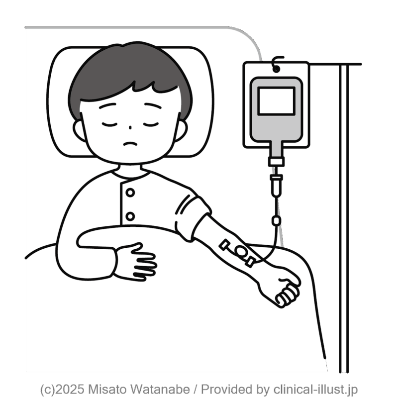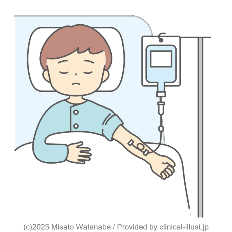 子どもが点滴治療を受けるイラストです。