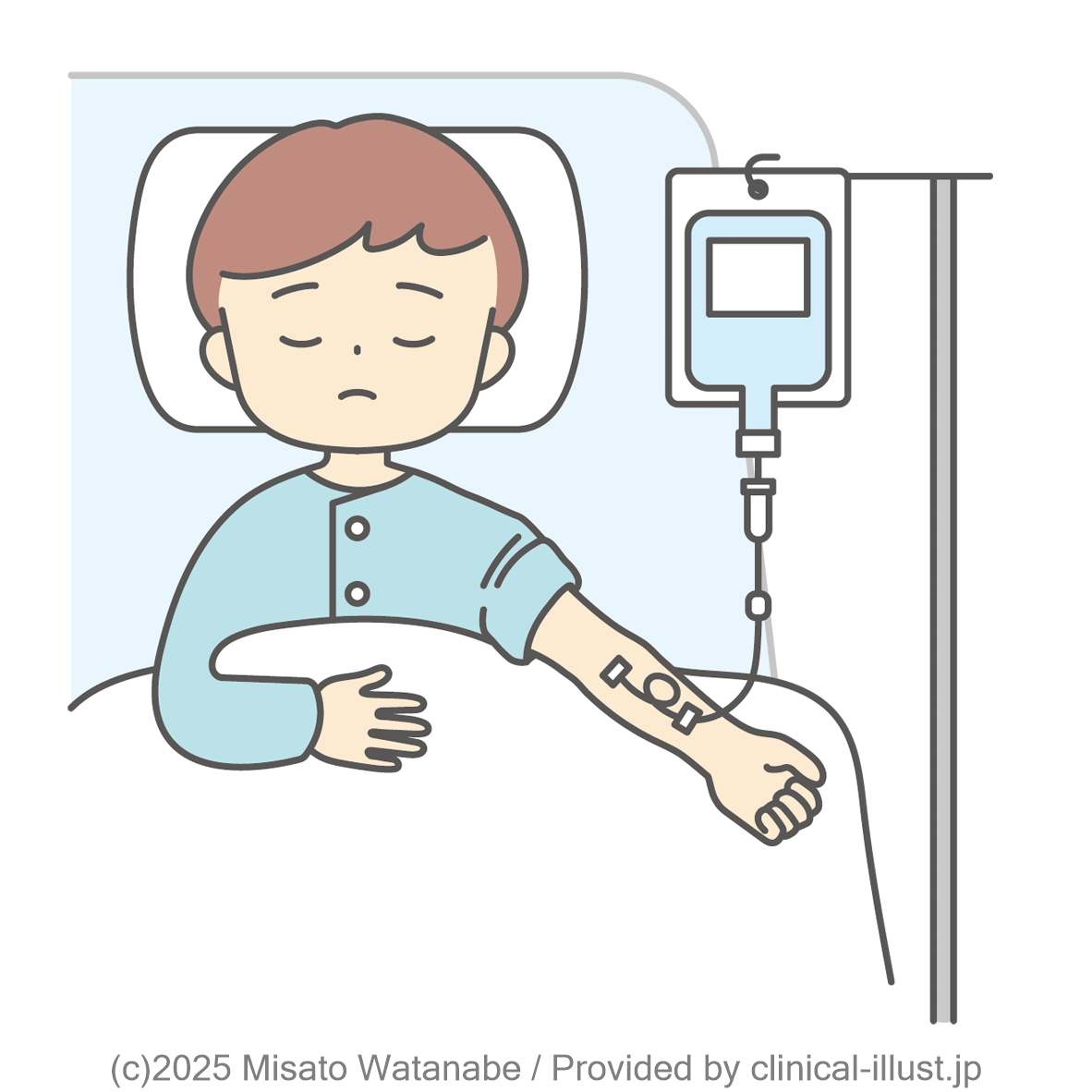 子どもが点滴治療を受けるイラストです。