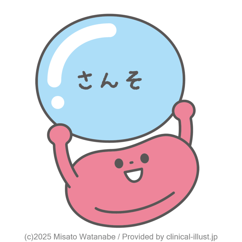 体中に酸素を運ぶ赤血球のイラストです。